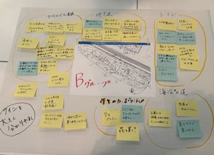 Bグループの意見を模造紙に貼り付け