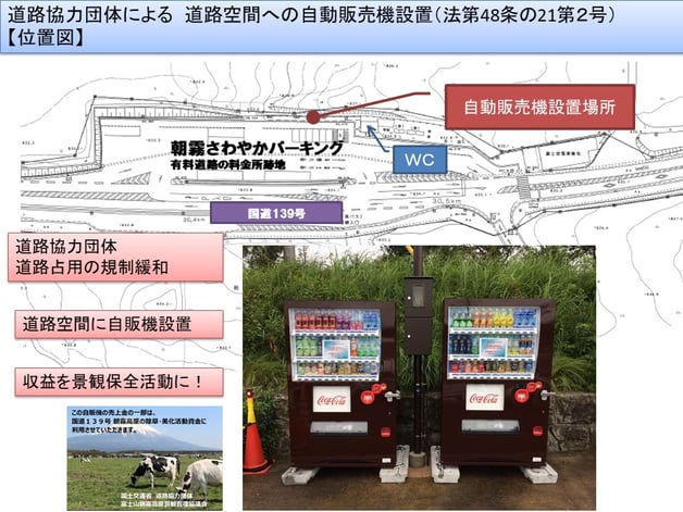 道路空間に自動販売機を設置(規制緩和)を受けて、その収益を活動資金に還元しています。